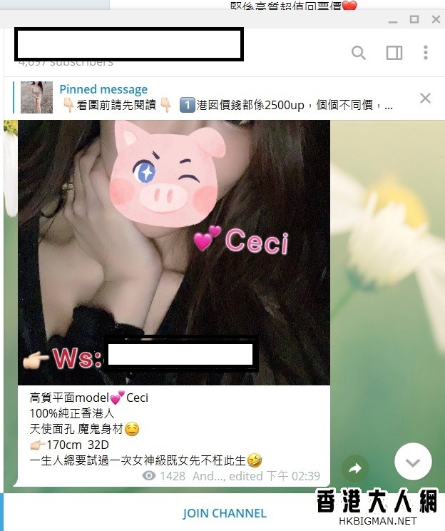 而且類似既tg 群有好多, 你可以去晒咁多個tg群, 而放棄佢果一個群. 因為佢要求所有女仔只可以在佢個群出Post, 入其他群就ban走. 但其實佢個群個朵係最臭, 同時其他群加埋既人遠遠多過佢一個群.